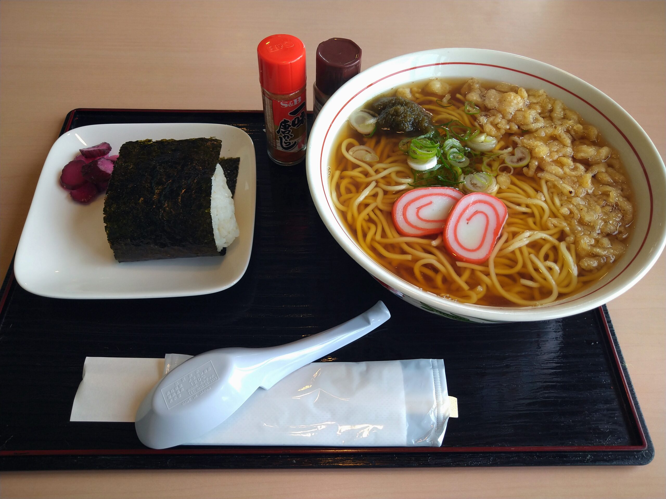 かけ中&おにぎり(こんぶorのり)のセット。値段は660円。大盛りで710円でした。